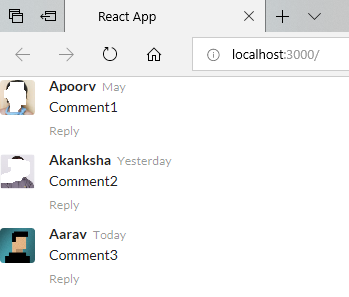 <Comments user="Akanksha" time="Yesterday" commentData="Comment2" />