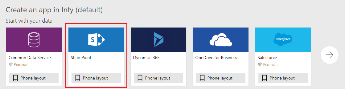 A new window will open. I am using SharePoint List to create this PowerApp, hence will choose SharePoint. Click on Phone Layout.
