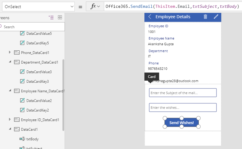 In this article, we will see how to send an email from a PowerApp. We will use SharePoint list for this app. Let’s say we want to send birthday wishes to our team members on their email.