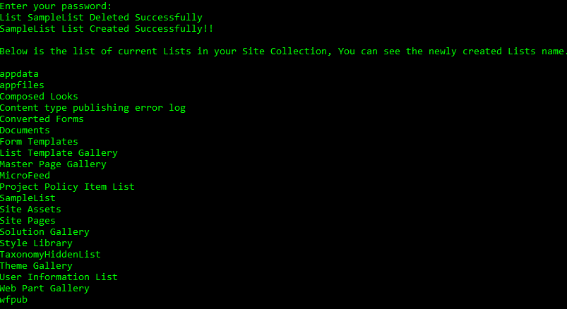 Console.WriteLine("List " + listname + " Deleted Successfully");