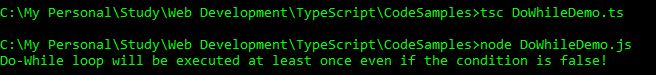 console.log("Do-While loop will be executed at least once even if the condition is false!");